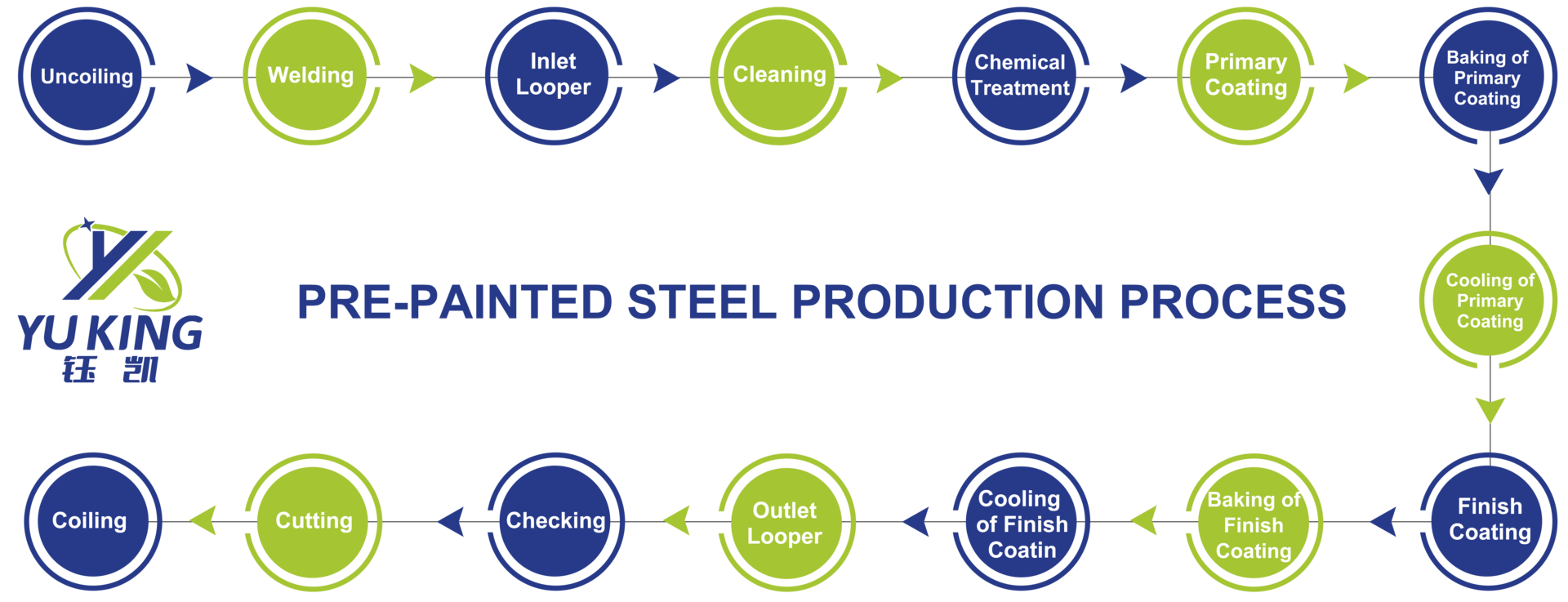 At present, Yuking has two production lines of color steel plate, one aluminium zinc silicon production lines, The PPGL produced are of variety of colors, complete styles and excellent quality,which can meet the extensive needs of customers at home and abroad.